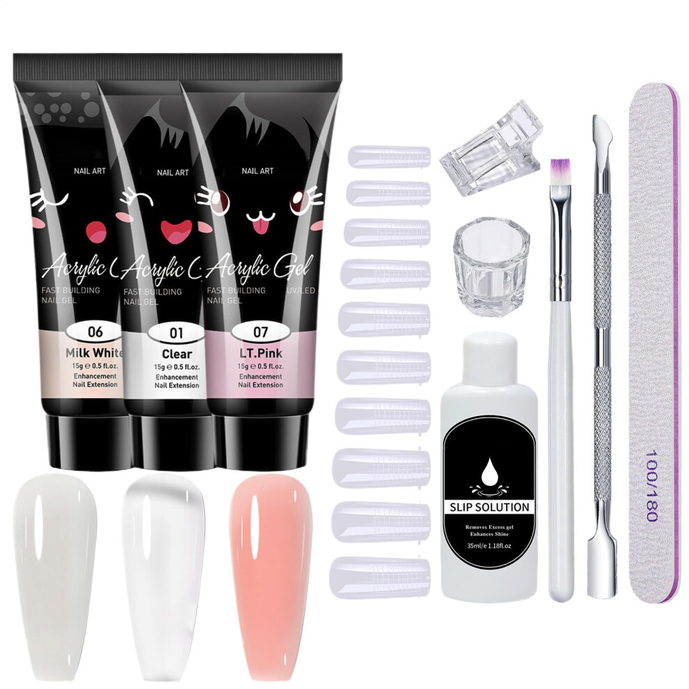 Slip Solution and Dual Forms in Poly Gel Nail Art Kits, Poly Extension Gel Manicure Kit with Easy to Use Application, Natural Look and Feel, Odorless