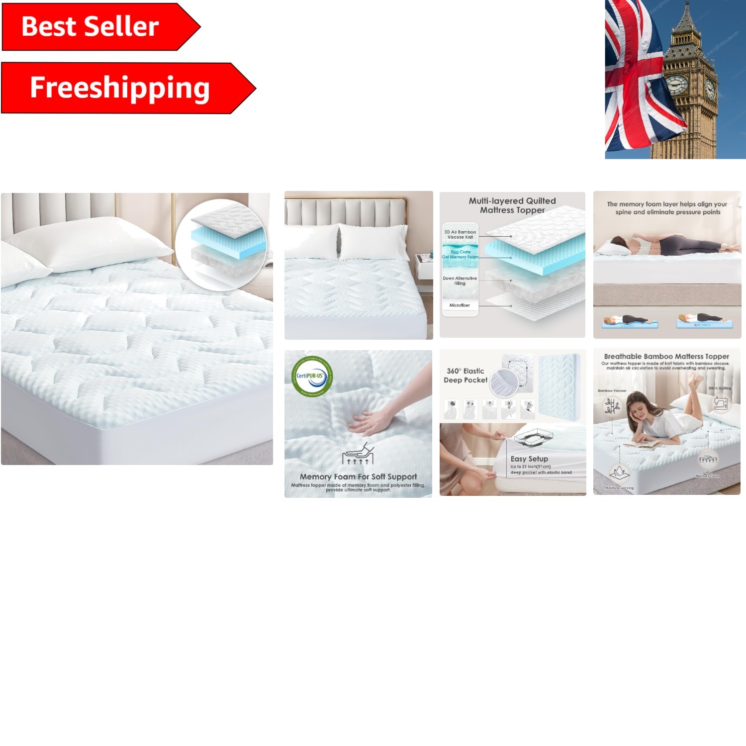 EHEYCIGA Gel Mattress Topper 135 x 190 cm Memory Foam Cooling with Extra Deep Pocket Grey â This product is designed premium quality and rel