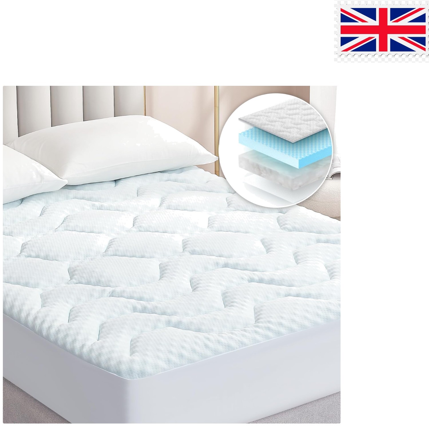 Quilted Gel Mattress Topper for Single Beds - Comfort and Protection, White