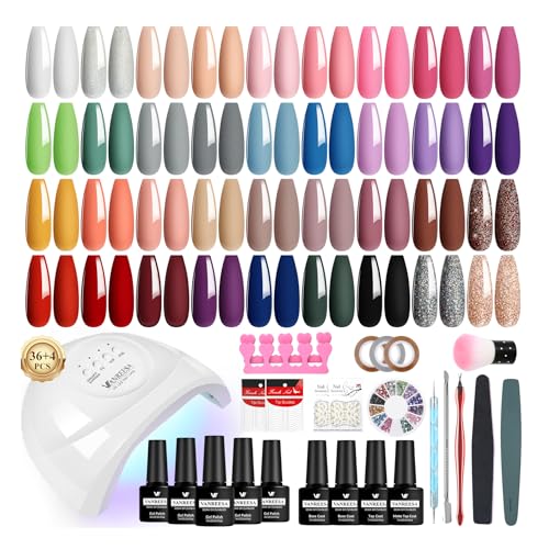 VANREESA 60 PCS Gel Nail Kit with 48W U V Lamp 36 Colours All Seasons Gel Nail Polish Set with Lamp Starter Kit Pink Red Brown Gels Polish Set with Base and Top Coat Manicure Salon Gifts for Women