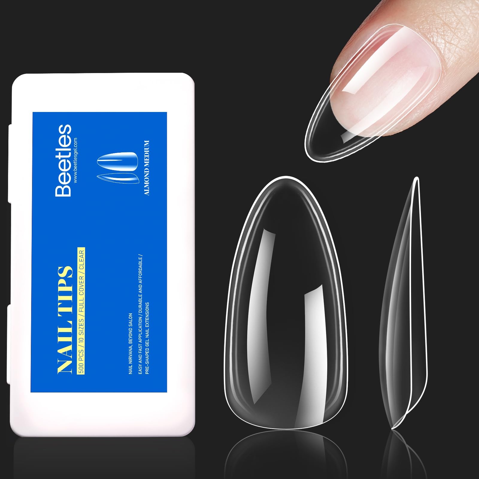 Beetles Gel Nail Tips Kit 500Pcs Clear Full Cover Medium Almond Pre-shaped False Nails for Gel Polish, Soak Off Easy Nail Extensions Acrylic Nails