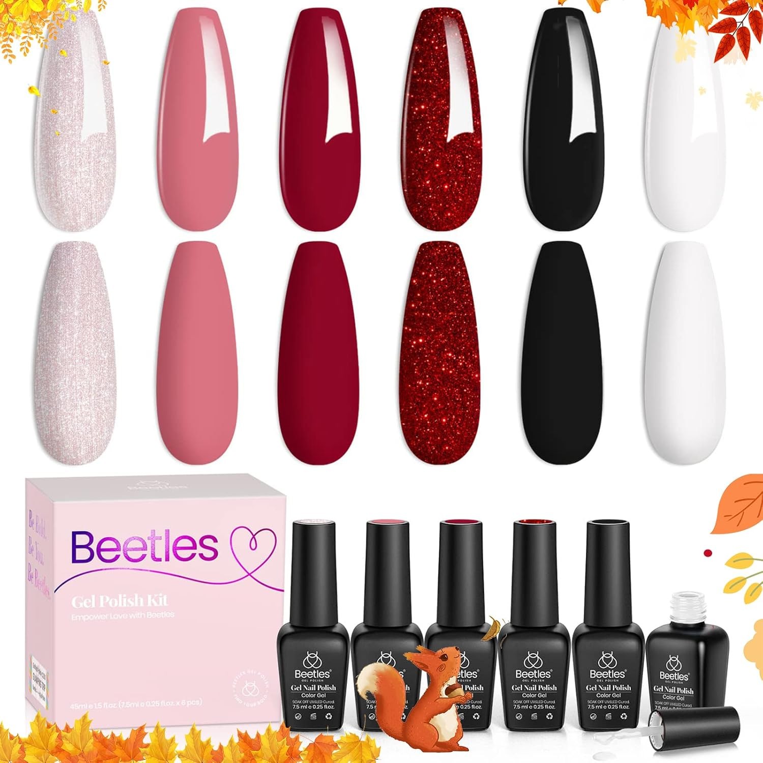 Beetles Gel Nail Polish Kit, 6 Colors Queen of Hearts Collection Pink Red Glitt