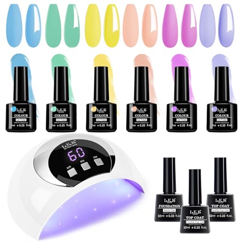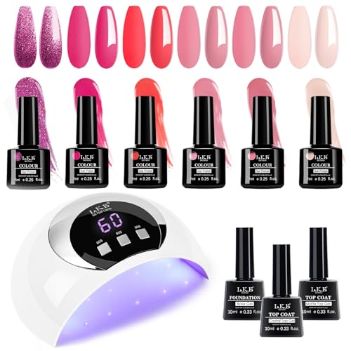 Gel Nail Kit LKE 6 Colors Gel Nail Polishes Set with 54W UV Lamp, Glossy & Matte Top and Base Coat,Pink Gray White with Lamp Starter Kit for Nail Art DIY at Home