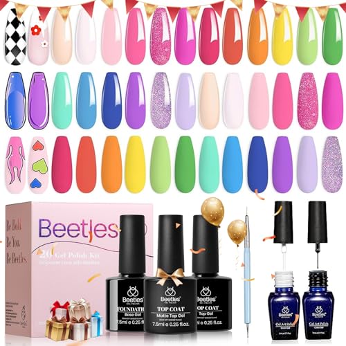 Beetles Gel Polish 20 Colors Gel Nail Kit with 3Pcs Gel Base and Top Coat Gloss