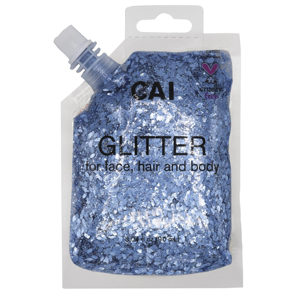 CAI BEAUTY NYC Blue Glitter Bag Gel for Face Body and Hair 90ml 3.04oz Holographic Cosmetic Grade Glamour Chunky Glitter Makeup | Festival Rave