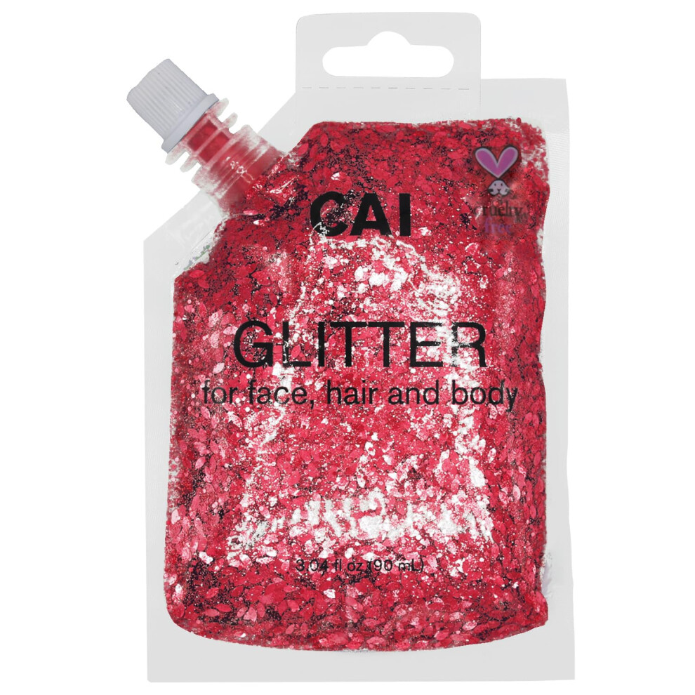 CAI BEAUTY NYC Red Glitter Bag Gel for Face Body and Hair 90ml 3.04oz Holographic Cosmetic Grade Glamour Chunky Glitter Makeup | Festival Rave