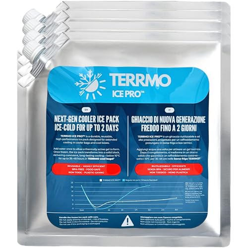 TERRMO Ice Pro™ Premium Large Ice Packs for Cool Box, Cooler Bag | Extra Long-Lasting Freezer Blocks 24h – 72h | Reusable Gel Cold Packs for Camping, Food, Travel | XL size: 830ml – 25x25cm – 4 Pack