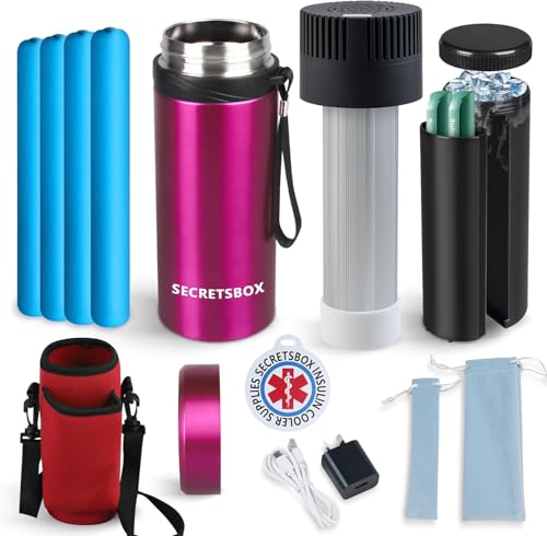 Insulin Pens Cooler 2-8℃ Control, Electric Medicine Cooler Travel Case, Diabetics USB Medication Fridge TSA Approved, with 4 Gel Ice Pack Portable EpiPen Case, Red
