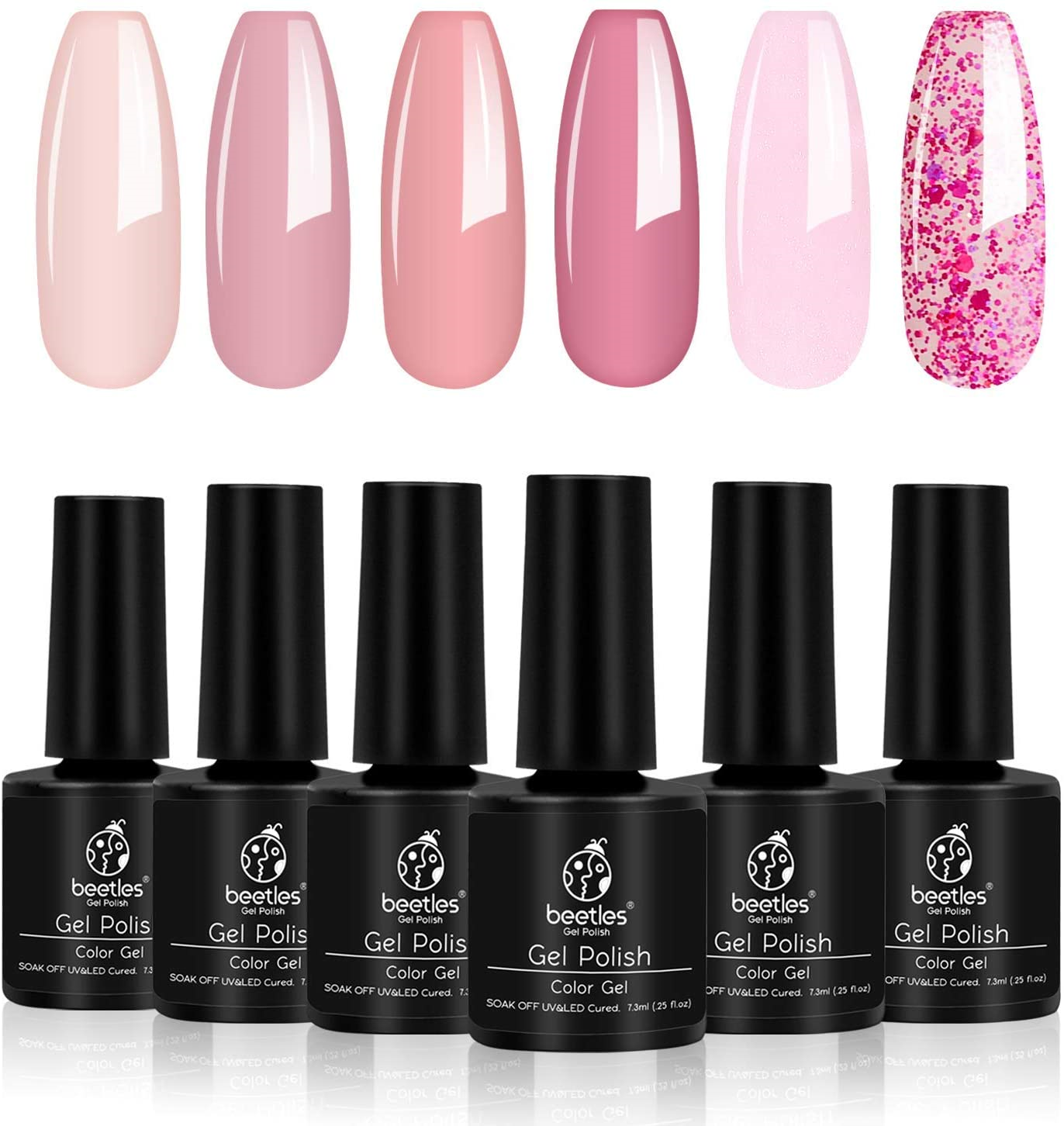 Beetles Gel Nail Polishes- Pink Confetti Gel Nail Polish Set, 6 Colors Nude Pink