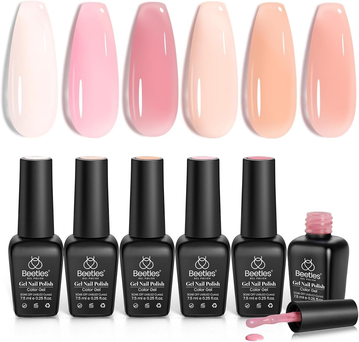 beetles Jelly Gel Nail Polish Set, 6 Colours Ballet Dress Milky White Sheer Pin
