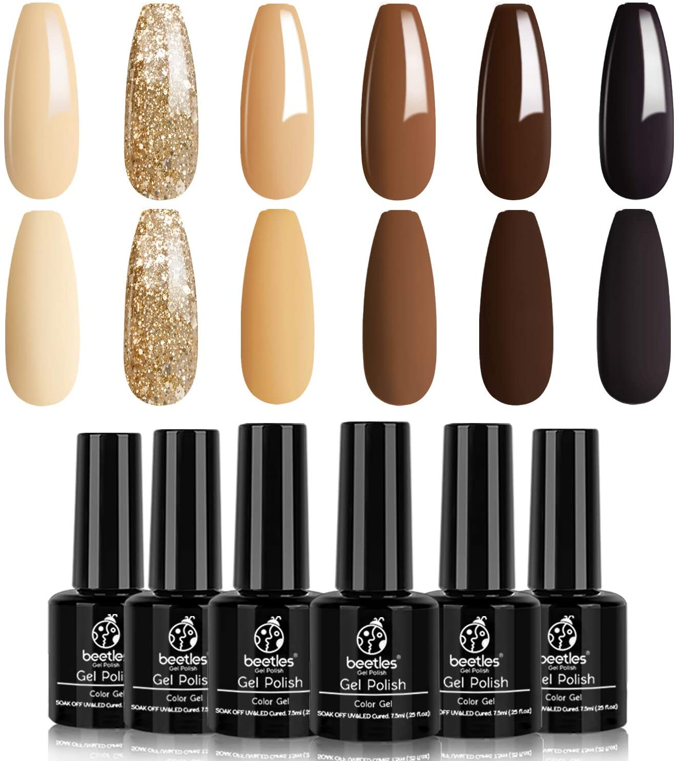 Beetles Winter Gel Nail Polish Set - Roasted Chestnuts Collection 6 Colours Autumn Chocolate Brown Gel Polish Kit Neutral Khaki Gold Glitter Yellow Beige Soak Off UV Gel Nail Art Gifts for Her