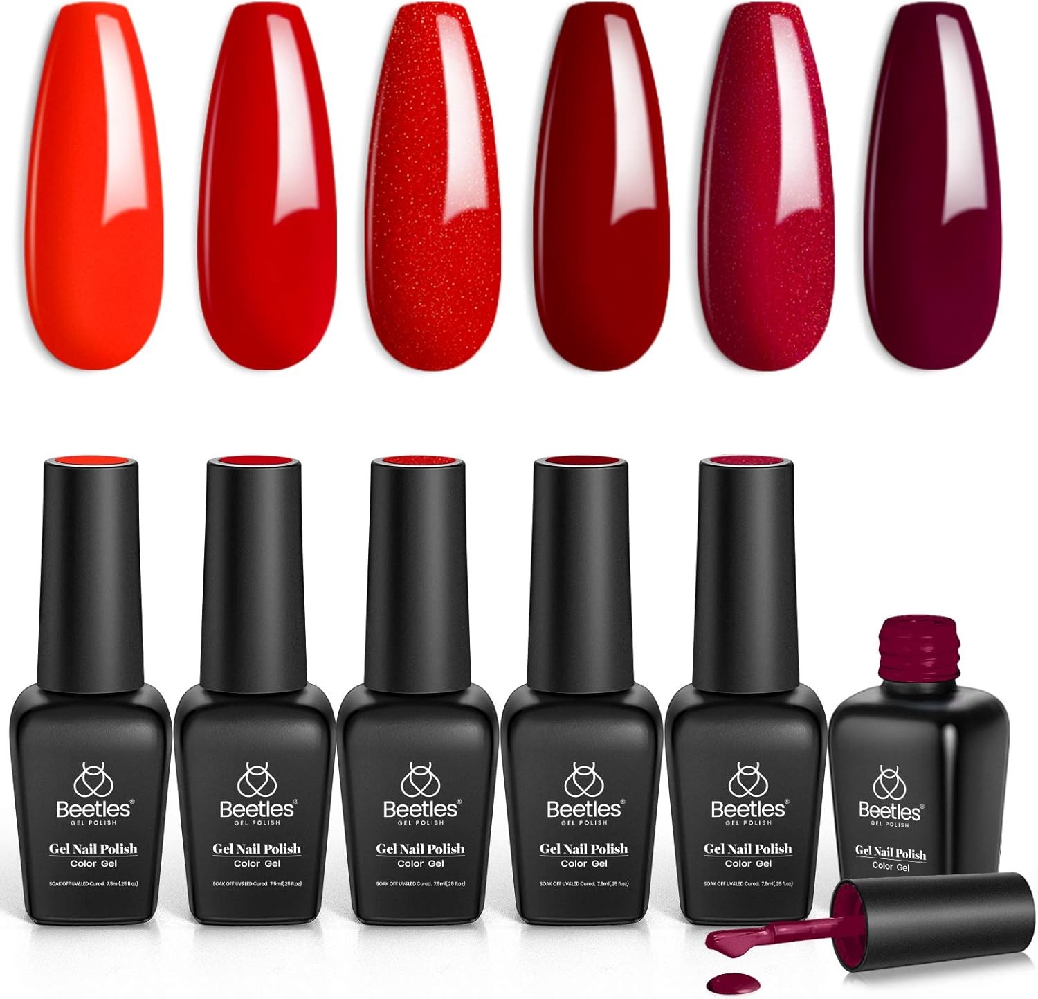 Beetles Bloody Mary Red Gel Nail Polish Set - 6 Pcs Shimmer Red Burgundy Red Ge