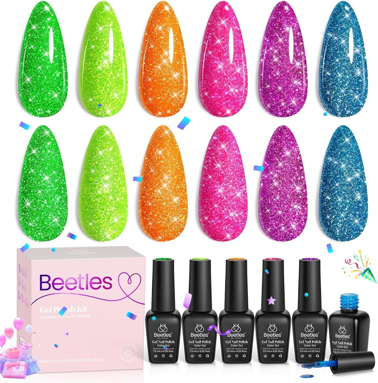Beetles Reflective Glitter Gel Polish Set 6 Colors Neon Gel Nail Polish Set Sum