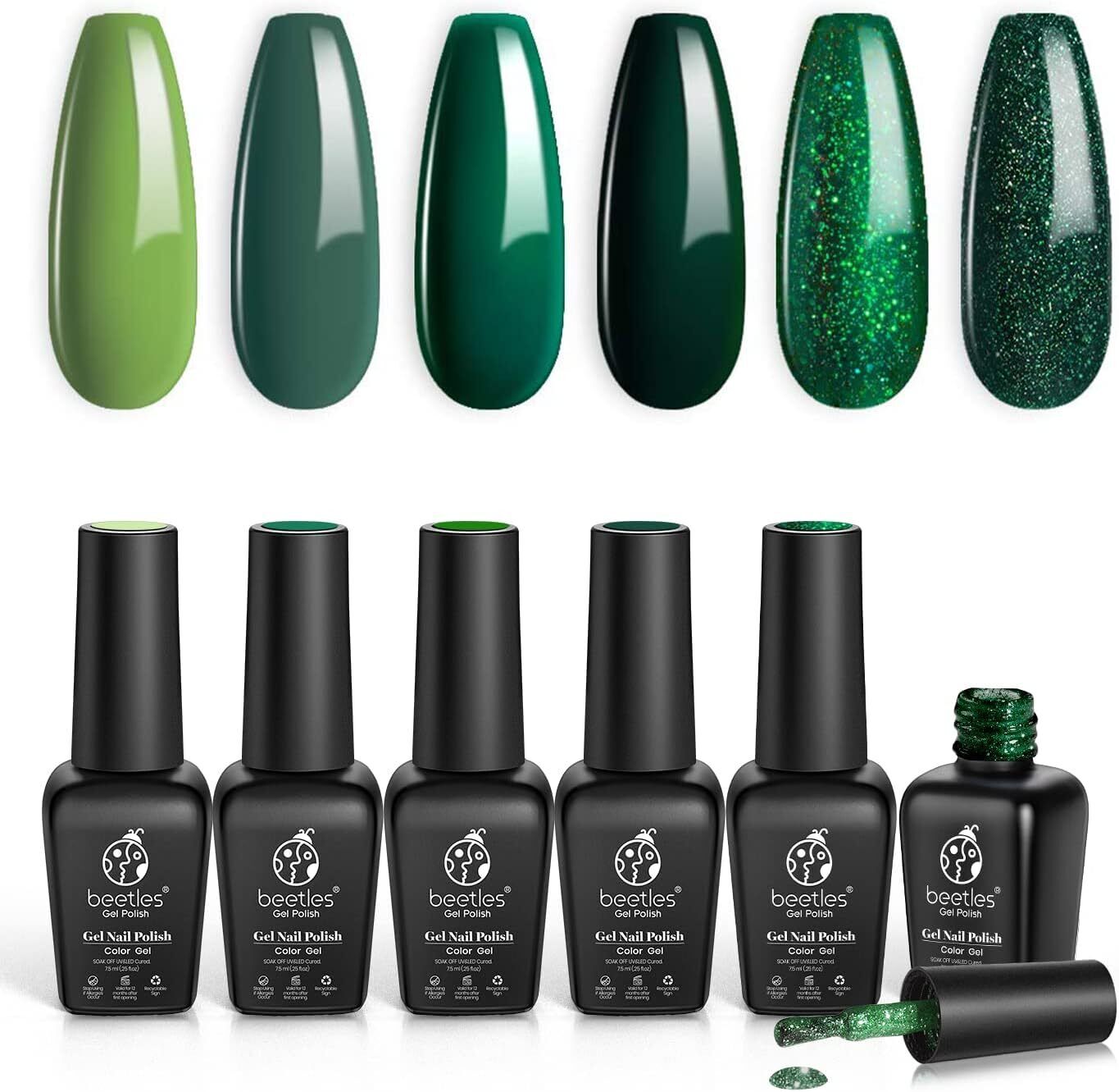 Beetles Green Gel Nail Polish Set - 6 Pcs Carnival Evergreen Glitter Green Spar