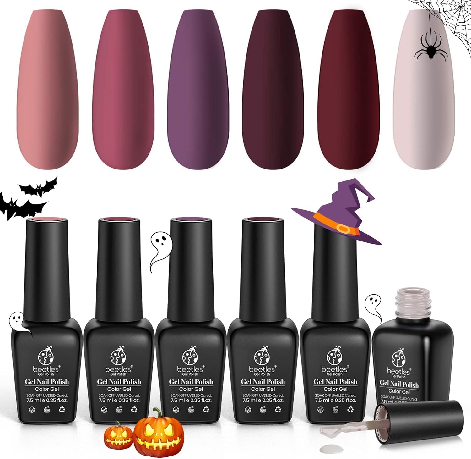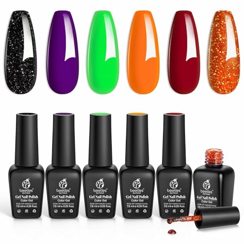 beetles Halloween Gel Polish Nail Set Hocus Pocus Collection Autumn Winter Orange Green Purple Black Glitter Gel Polish Set Soak Off Nail Lamp Uv LED Cured Manicure Gift for Girls