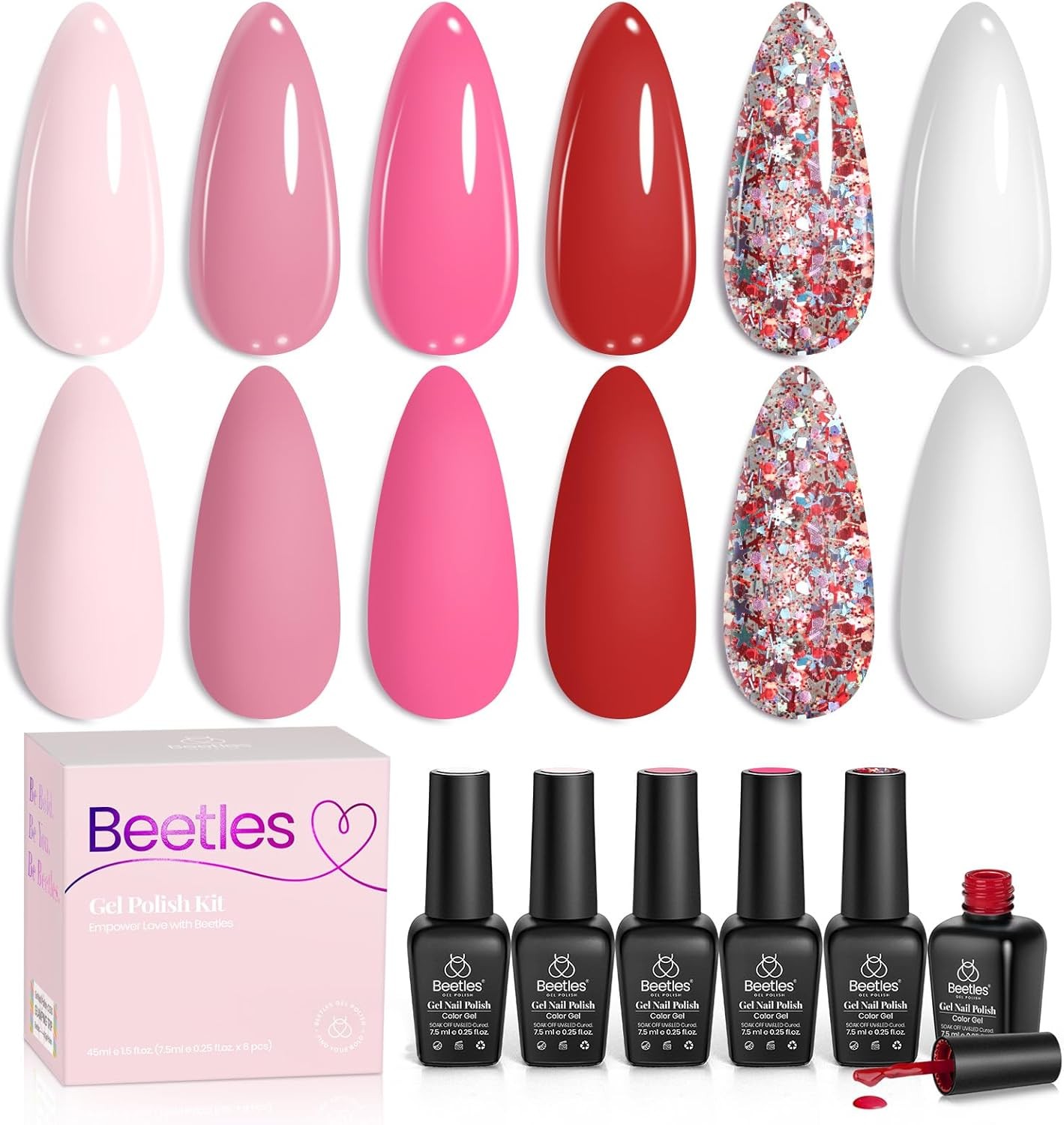 Beetles Gel Nail Polish Set -6 Colors Pink Rose Red Spring Summer Nail Gel Kit