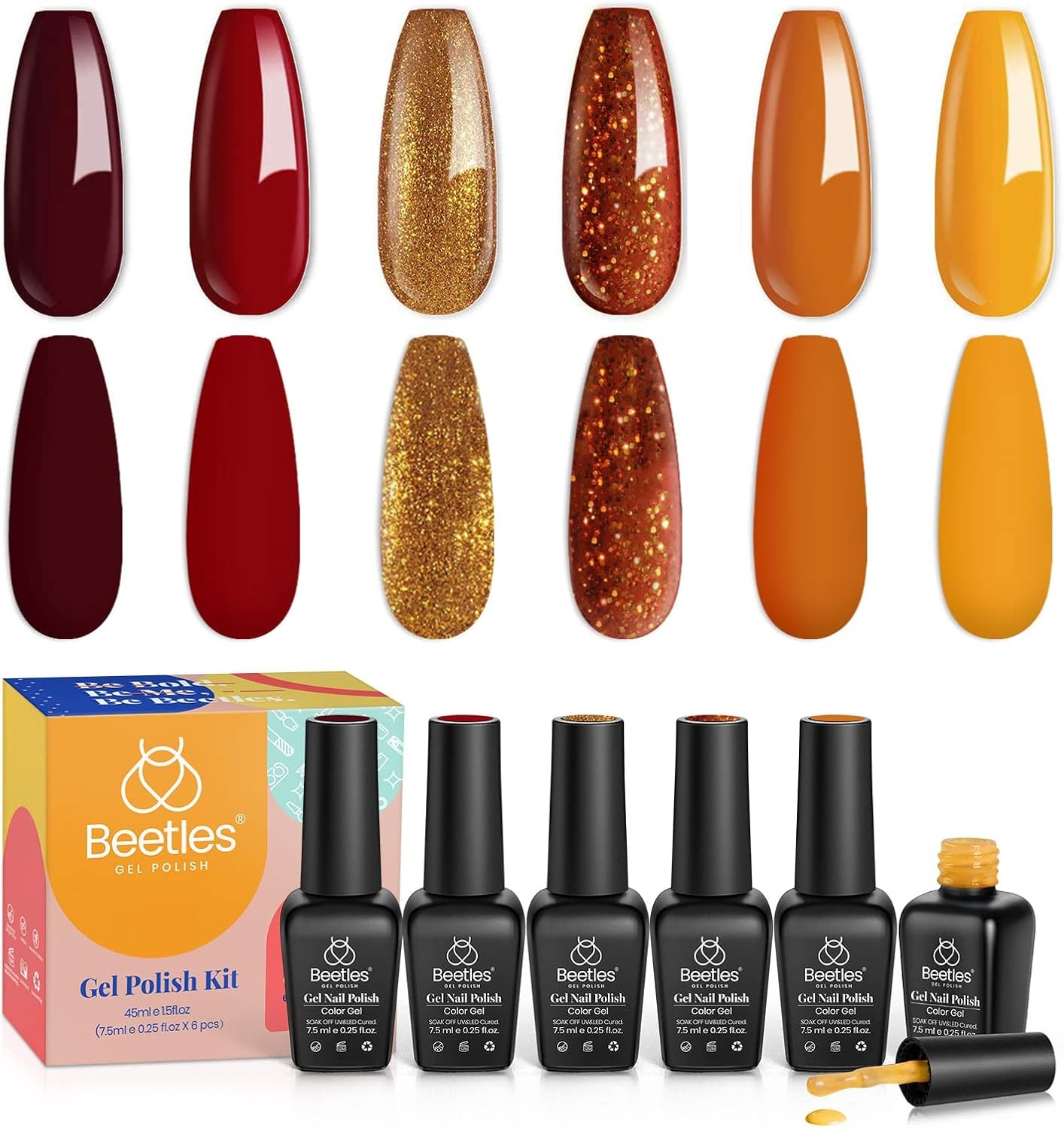 Beetles Gel Nail Polish Set,Fall Winter Colours Yellow Orange Gold Glitter Red