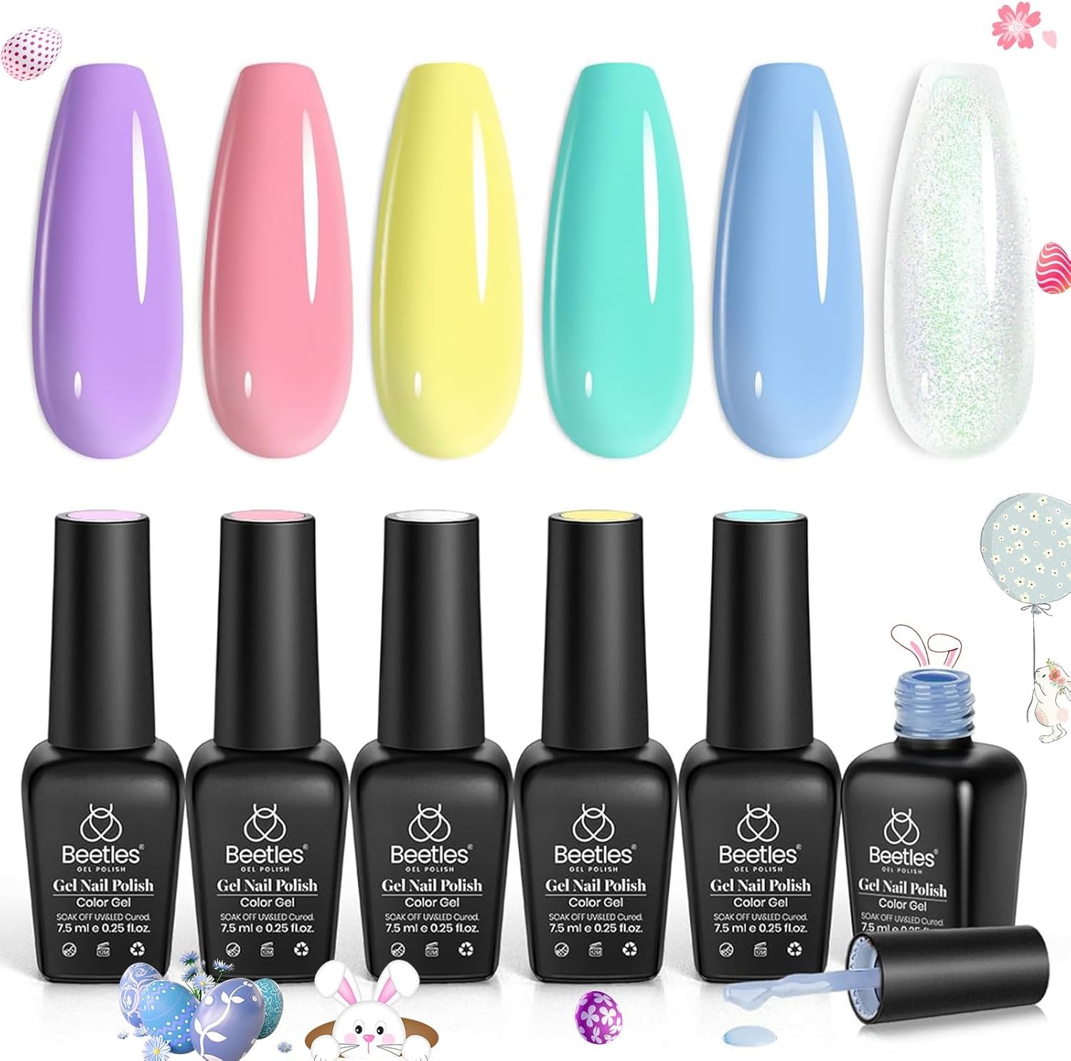 Beetles Easter Gel Nail Polish-20Pcs Pastel Macaron Collection Nude Pink Yellow Blue Green Glitter Gel Polish Set with Glossy Matte Top Coat Base Gel Gift for Women Girls