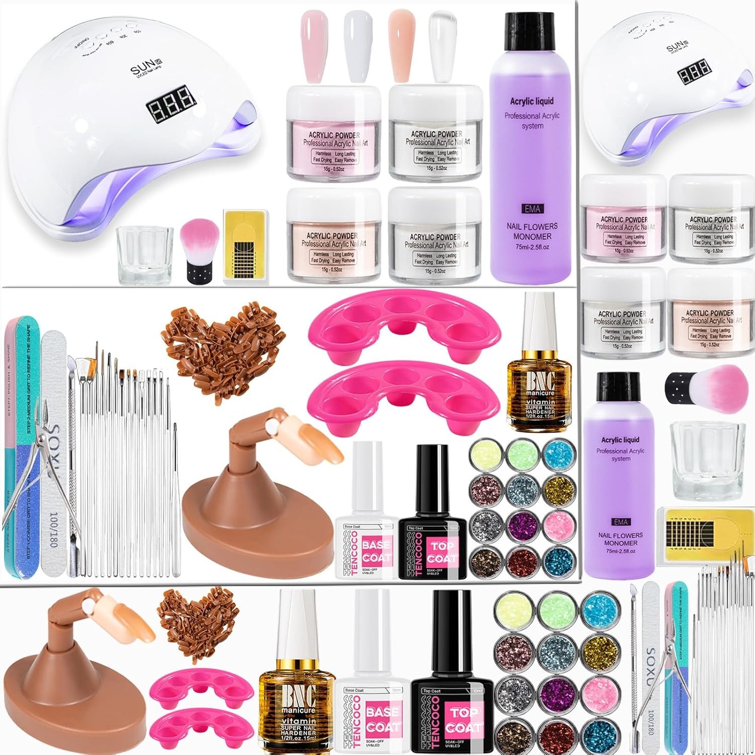 CENBEII Acrylic Powder Acrylic Nail Kit - UV Lamps for Gel Nails with Practice