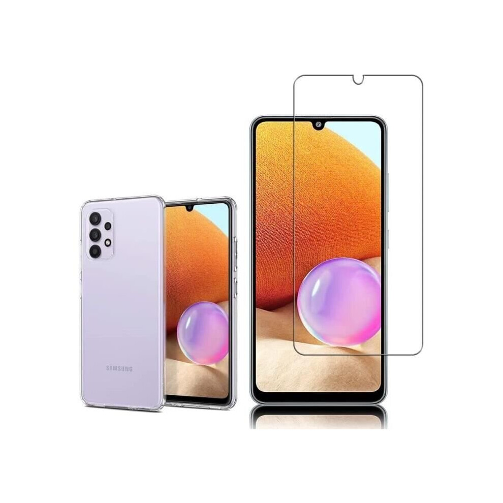 Case and Tempered Glass Screen Samsung Galaxy A32 A32 4G 6.4" Silicone Gel UltraSlim and Perfect Fit Transparent+1 FilmTX