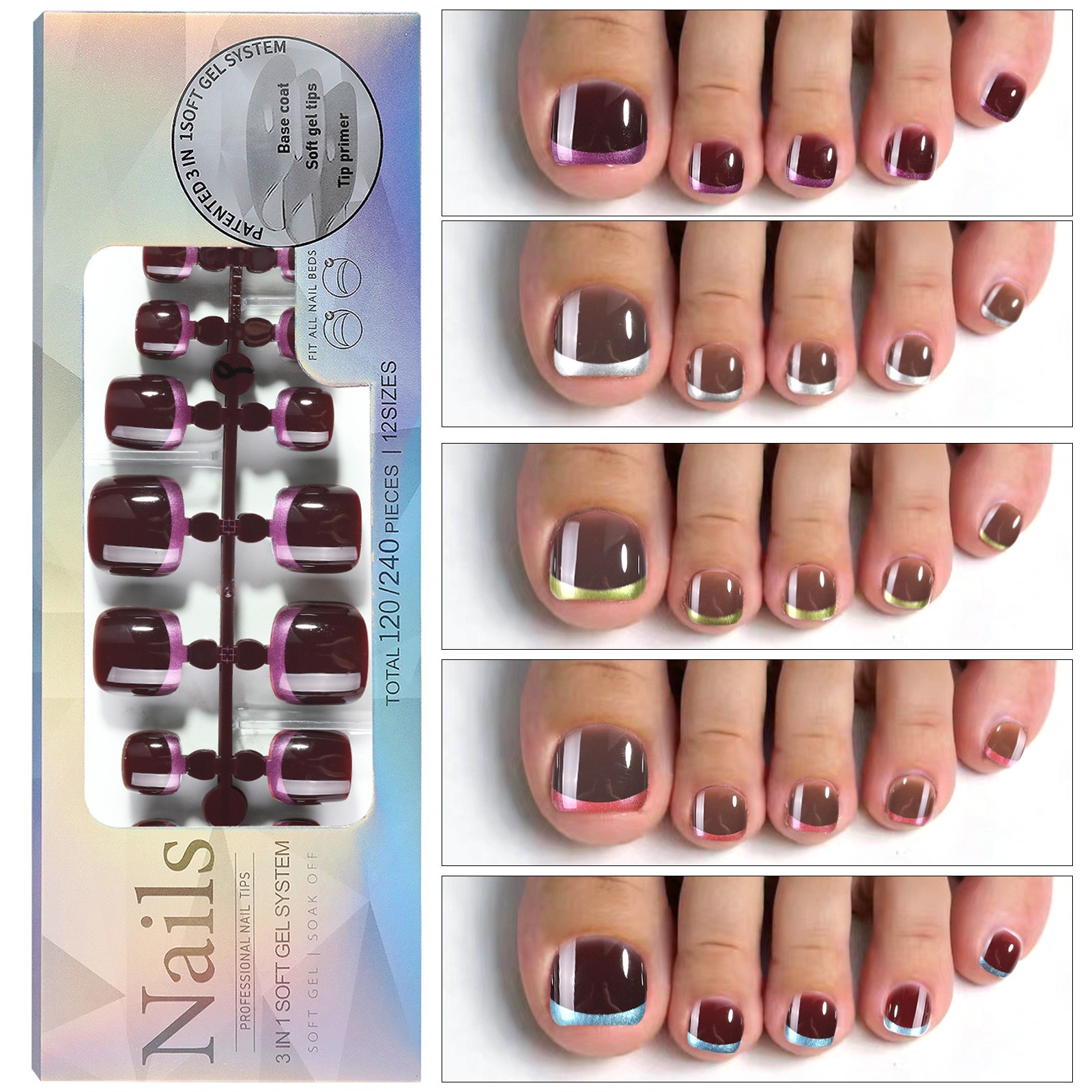 120PCS French Gel Toe Nail Tips DIY For Toenails French Tips Press On Nails