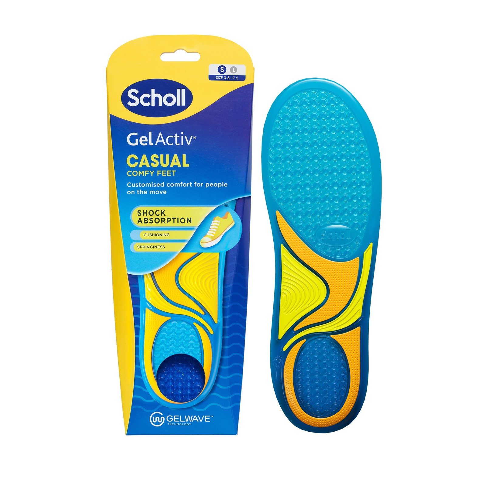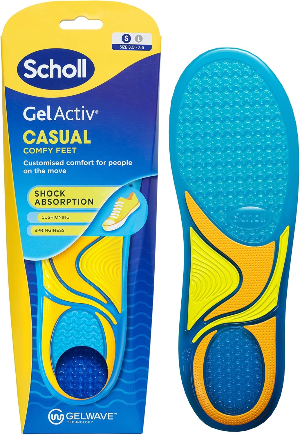 Scholl GelActiv Insoles Sports Shoes, Insoles with GelWave Shock Absorbing Technology, All Day Comfort for Active and Moving People, Size S