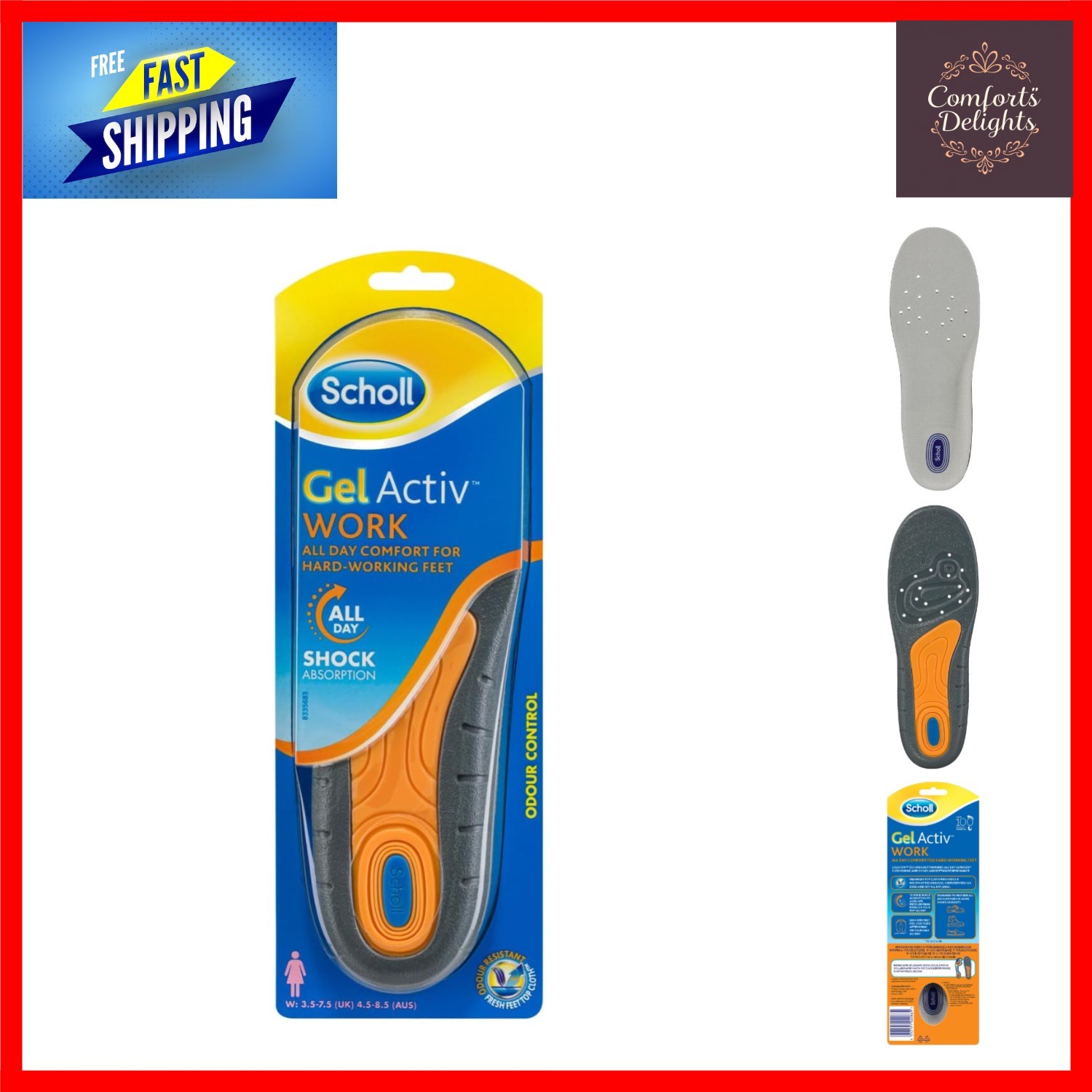 Scholl GelActiv Women's Work Insoles – 1 Pair (UK Size 3.5–7.5 / AUS Size 4.5–8.