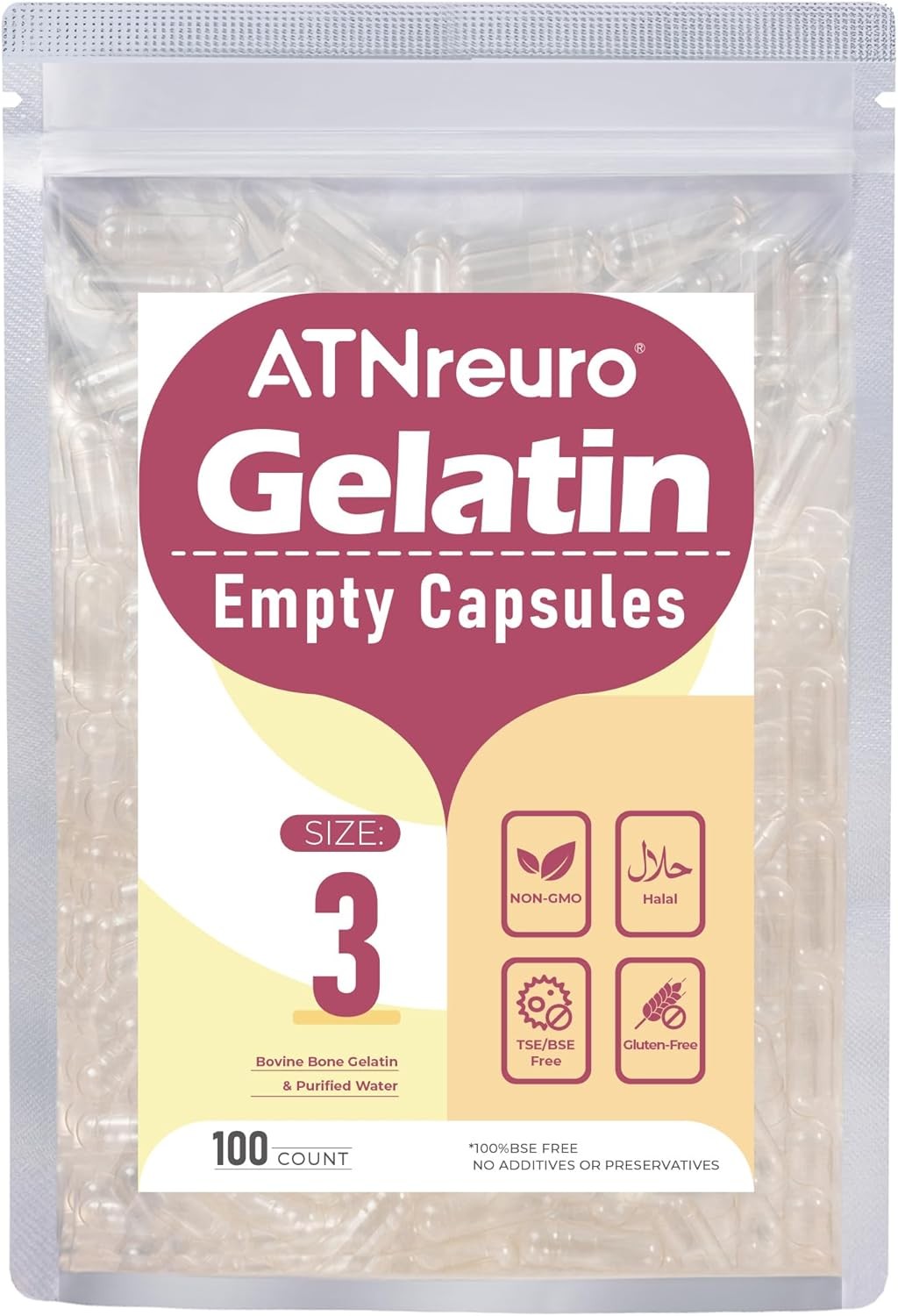 ATNreuro Size 3 Gelatin Capsules Empty Gelatin Capsules 100 Count Very Tiny Emp