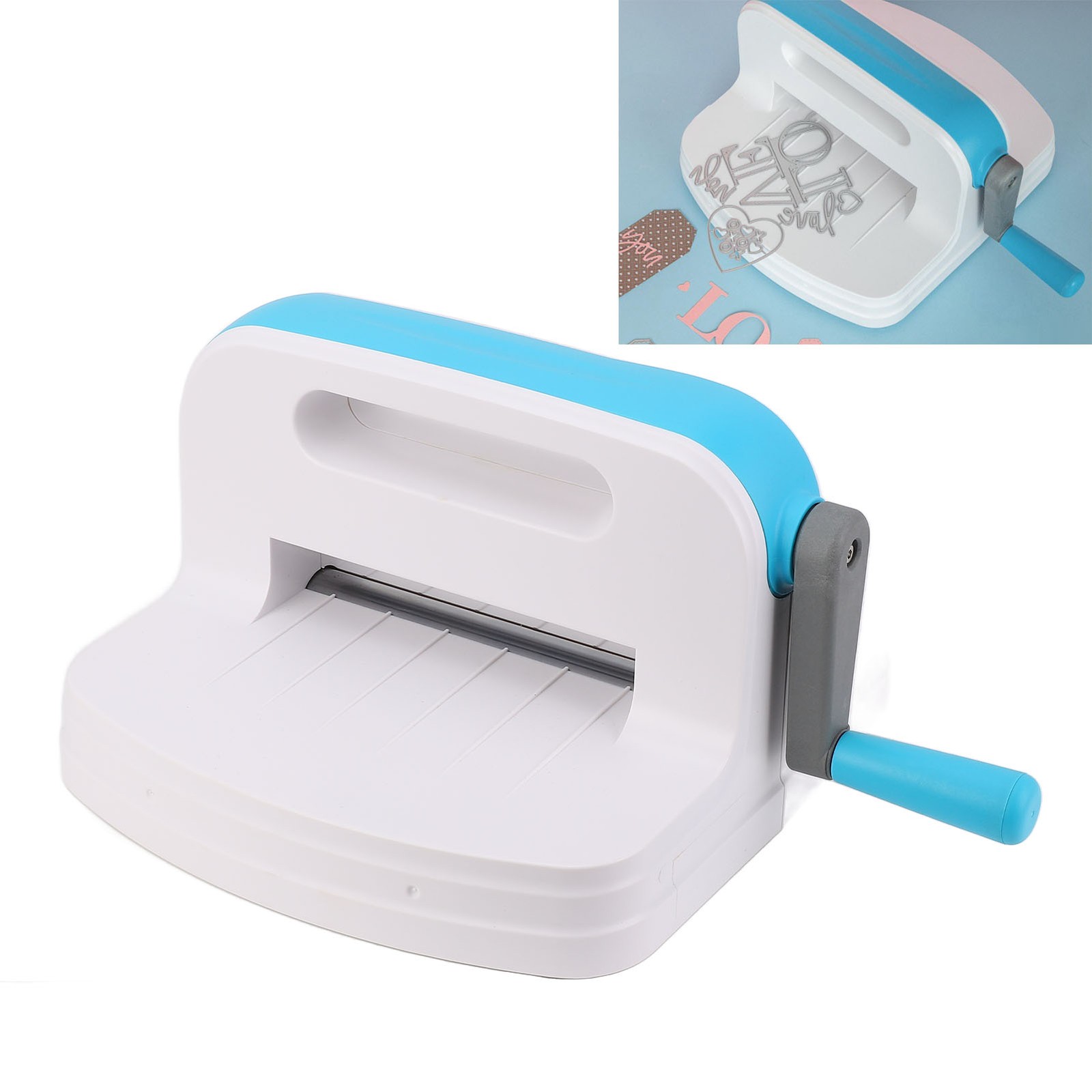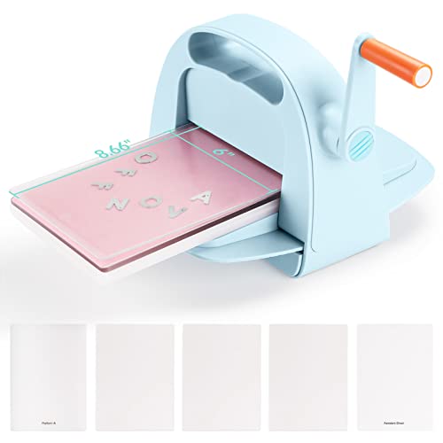 Embossing Machine, White Blue Troqueladora Manualidades Maquina Die Cutting Machine with 5 Base Plates DIY Hand Cranked Embossing Machine Set