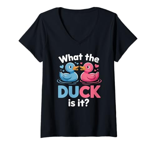 Womens What The Duck is it Baby Party | Baby Shower | Gender Party V-Neck T-Shirt