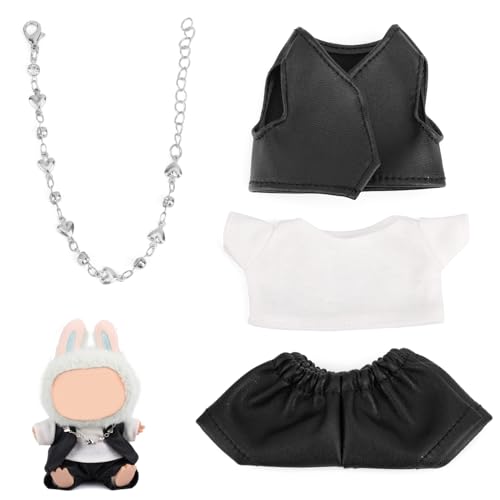 4pcs Doll Clothes Set, 15-17cm Doll Outfits Cute Clothing Fashion White T-Shirt PU Vest Pants Heart Necklace for 1st/2nd/3rd Gen Plush Dolls Display Accessories, Gifts for Collectors