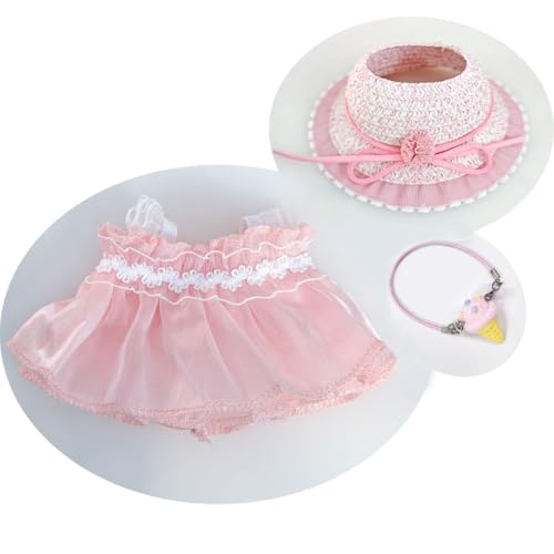 Tznzxm 17cm Dolls Clothes, Outfit Set for 6.7inch Dolls, Fashion 3-Piece Set Dress and Hair Clothes Accessories for 1st/2nd/3rd Gen 15cm 17cm Doll Play & Display (Doll Not Included) (Pink)