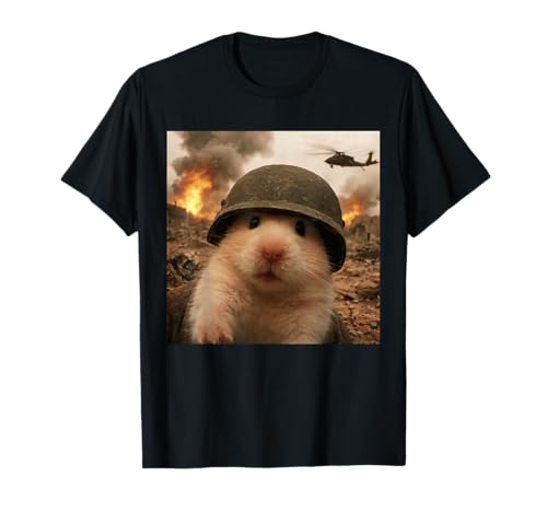 Cute Hamster War Scene WW2 Battlefield Soldier Funny Meme T-Shirt