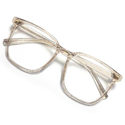 MACJERO Oversized Square Blue Light Blocking Glasses for Women Men Anti Fatigue Computer Monitor Glasses Reduce Eye Strain, Pearl Champagne, X-Large