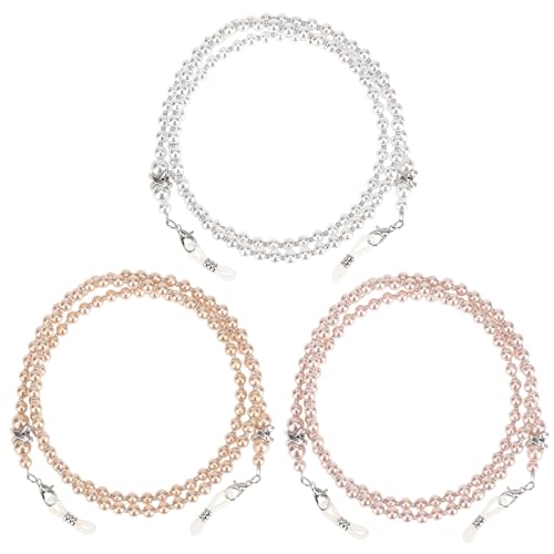 3 Pcs Glasses Chain, Pearl Eyeglass Chain, Beaded Eyeglass Chain Sunglasses Holder Strap, Eye Glass Holders Necklaces, Pearl Masks Chian for Women(White&Pink&Light Brown)