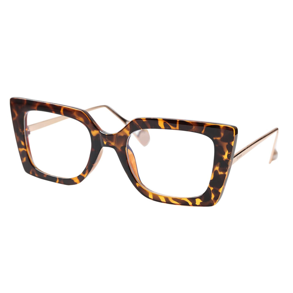 Oversized Square Blue Light Blocking Glasses Cat Eye Style with Pearl Inlay Arm for Eye Strain Relief B2639