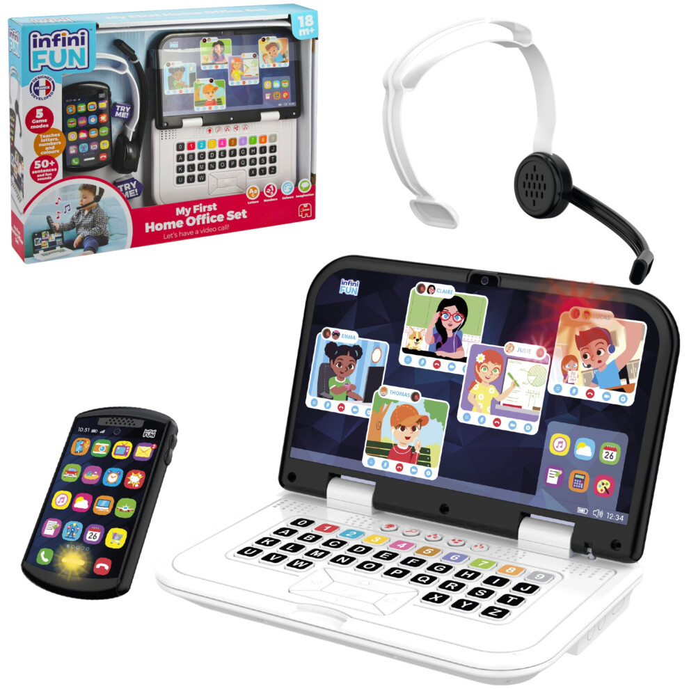 Infini Fun My First Home Office Set - Imaginative Play Imitation Game for Kids, Ultra-Realistic Work Set Up Toy, Pretend Kids Play Set - Laptop, Phone & Headphones - Be Like Mum & Dad, Age 18 Months +
