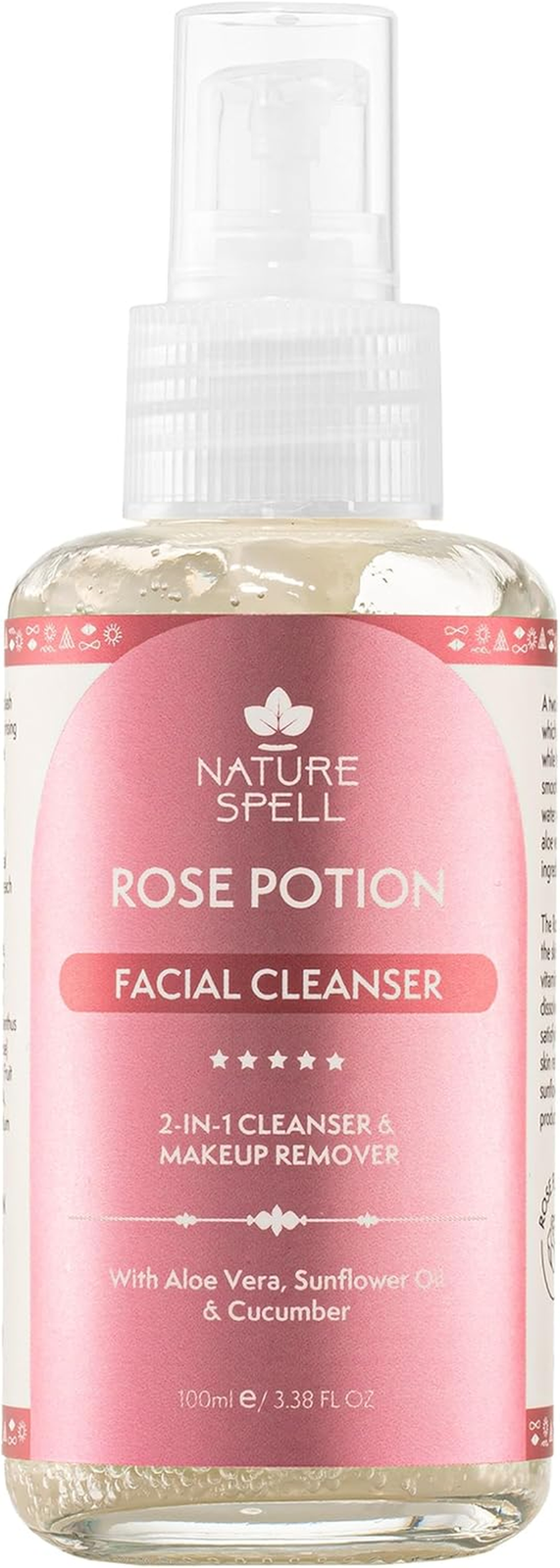 Nature Spell Gentle Foaming Cleanser, Repairing Skin Wash & Makeup Remover, Infused Rose Water, Aloe Vera & Cucumber, Vegan, 100ml