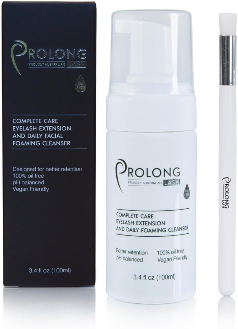 Prolong Lash Eyelash Extension Shampoo & Brush - Gentle Foaming Cleanser For Extensions & Natural Lashes - Vegan, Paraben & Sulphate Free, for Salon &