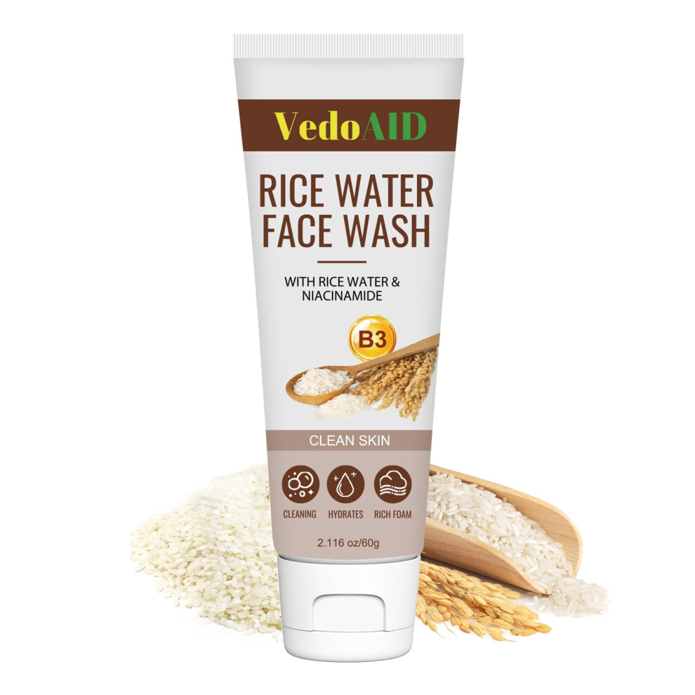 Rice Water Face Wash with Niacinamide Gentle Foaming Cleanser Hydrating for Sensitive Skin 2.1oz