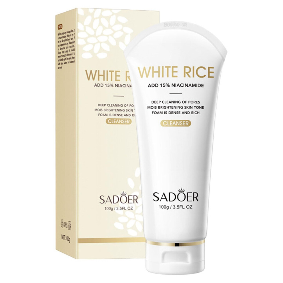 Rice Water Face Wash with Vitamin B3, Gentle Foaming Facial Cleanser for Dry and Sensitive Skin