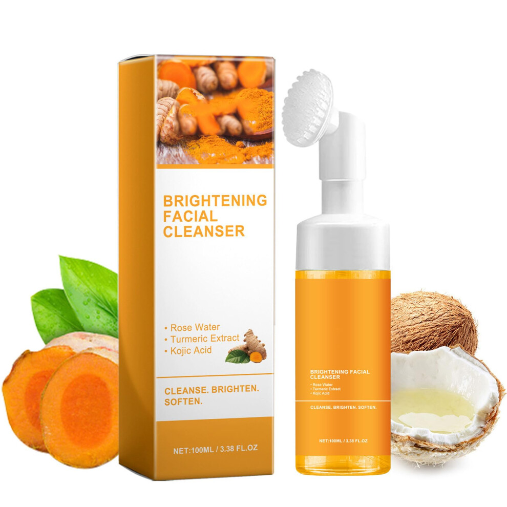 Turmeric Face Wash with Brush, Gentle Foaming Facial Cleanser for All Skin Types, 2PCS Natural Blend