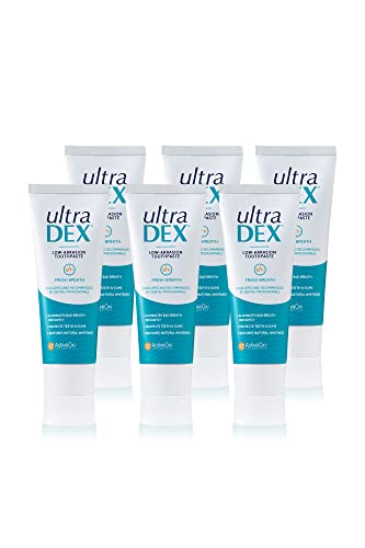 UltraDEX Low-Abrasion Toothpaste, Clinically Proven 12hr Bad Breath Treatment, Gentle & Non-Foaming, with Fluoride, Mint 6 X 75 ml, White