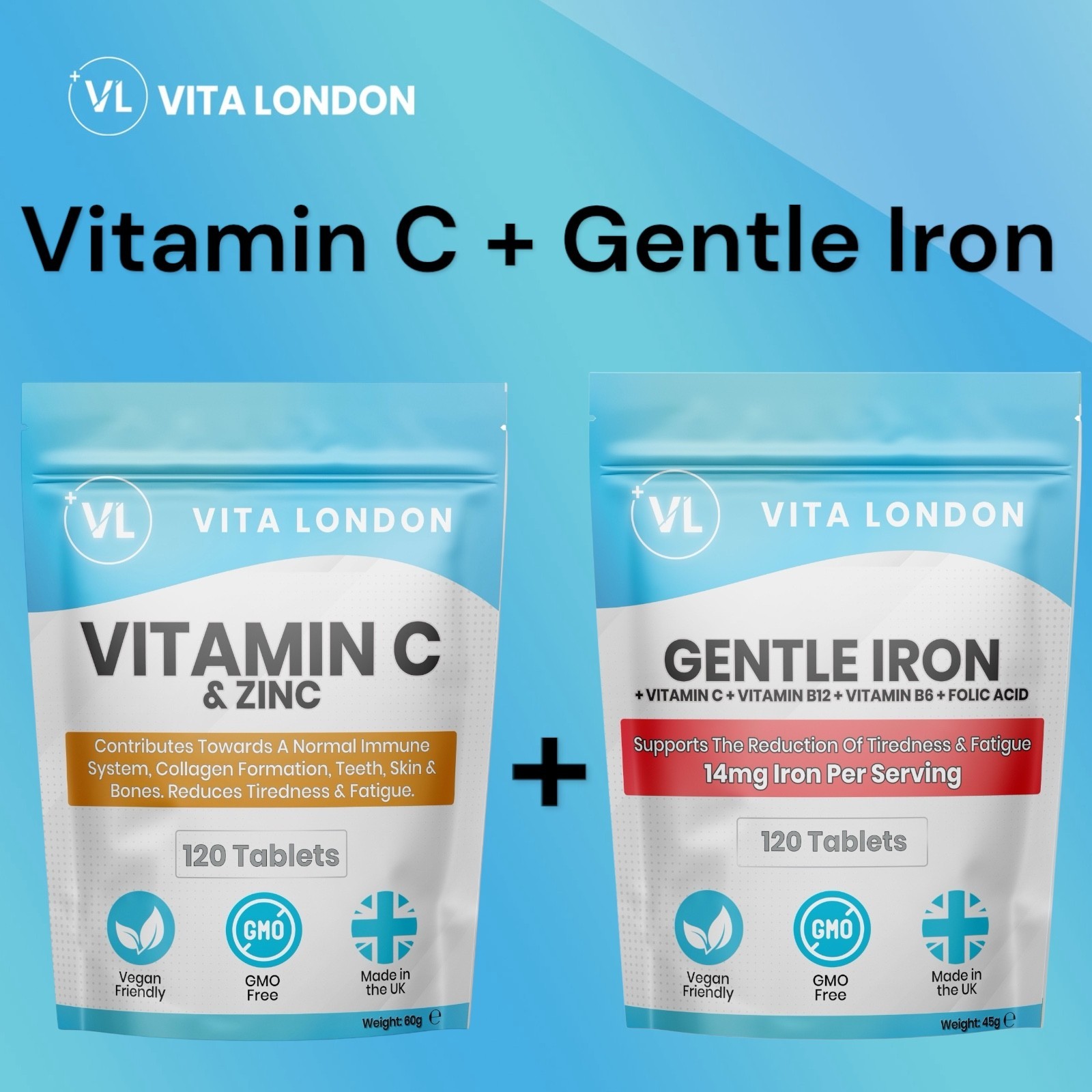 Vitamin C & Zinc + Gentle Iron & Vitamin C B12 B6 Tablets - 2pk Supplement Set
