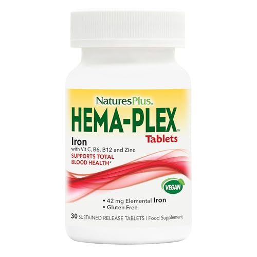 NaturesPlus Hema Plex - Gentle Iron Supplement with Vitamin C, Methyl B12, Folate - Blood Health, Immune Support, Energy - Vegan, Gluten Free - 30 Tablets