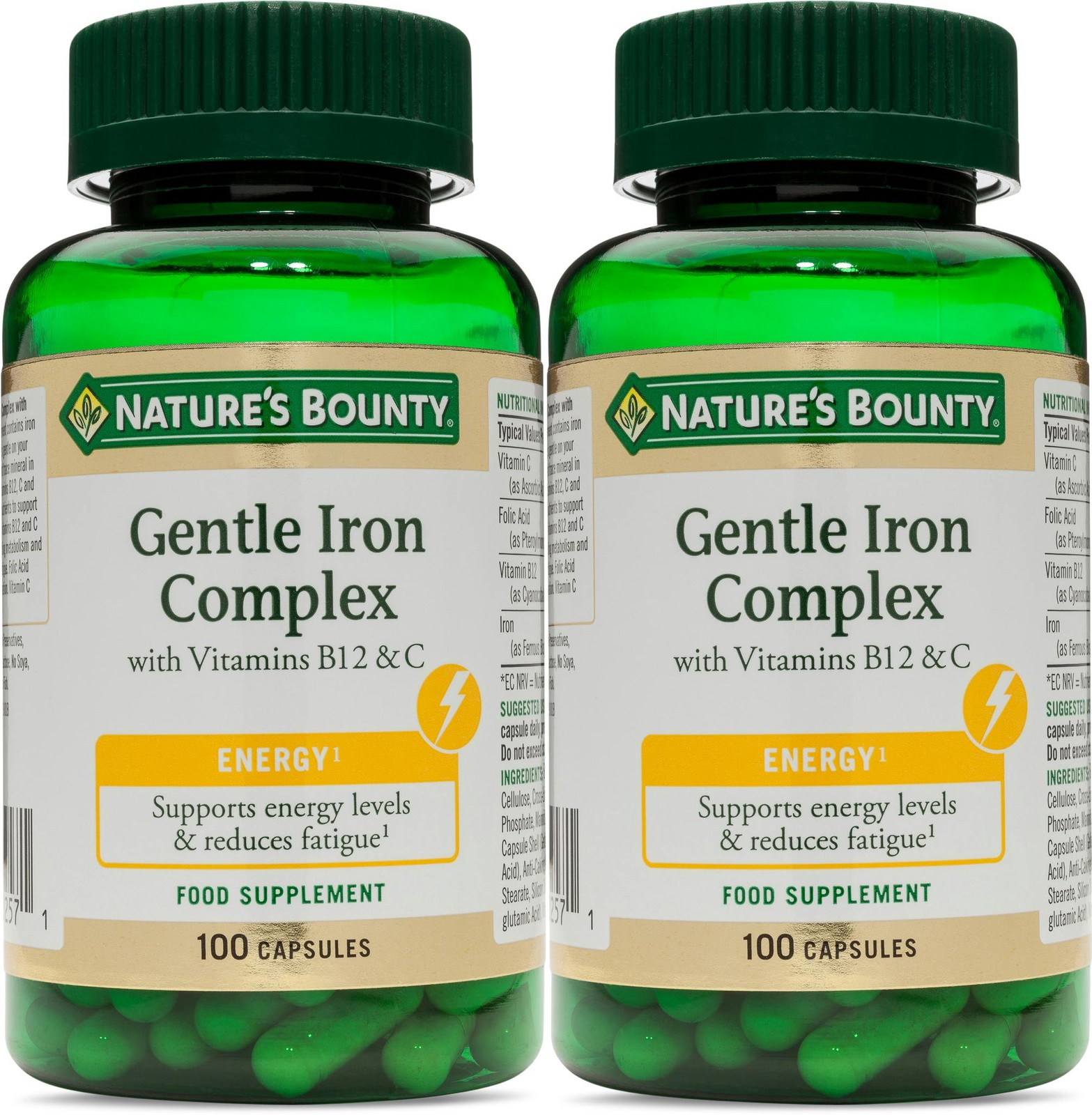 Nature's Bounty Gentle Iron Complex with Vitamins B12 & C 100 Capsules X 2