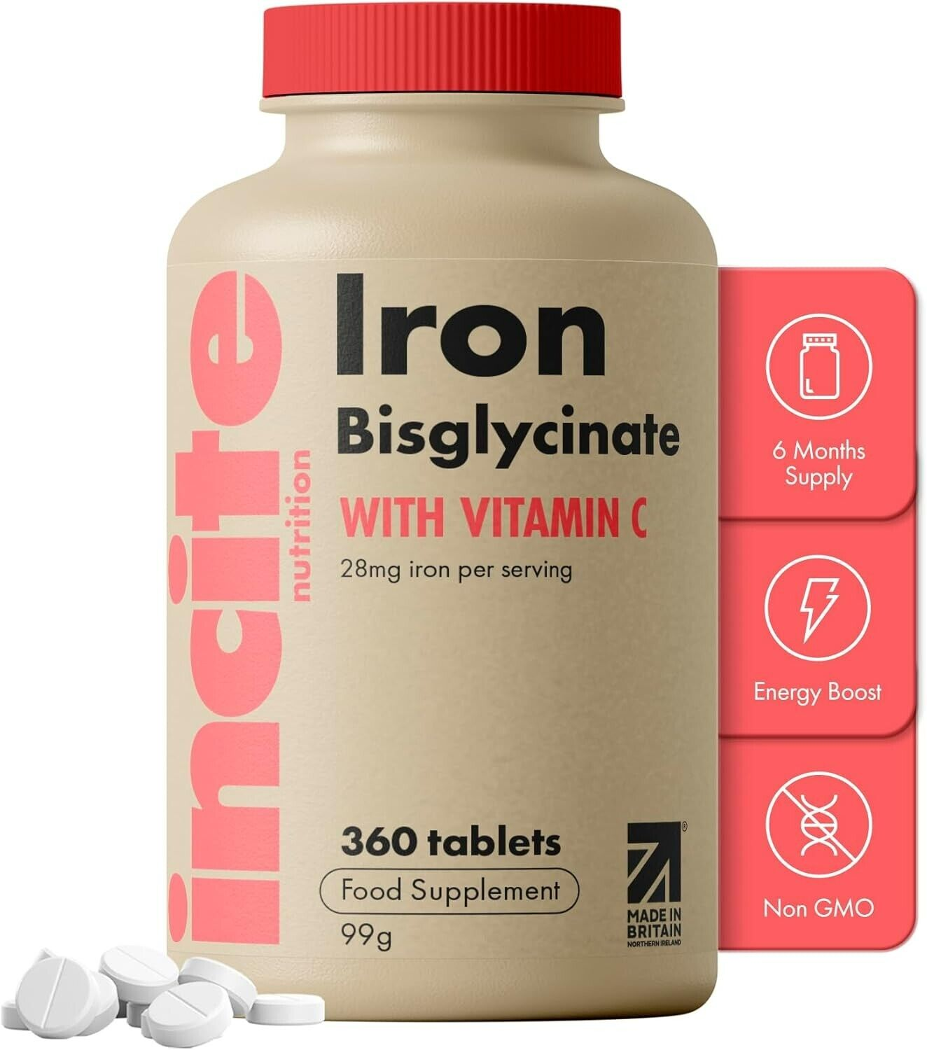 Gentle Iron Tablets - Iron Bisglycinate 28 mg, 6 Month’s Supply - 360 High Strength Tablets - Supplement Suitable for Vegans - Best Immune System Booster for Women & Men - Made in UK