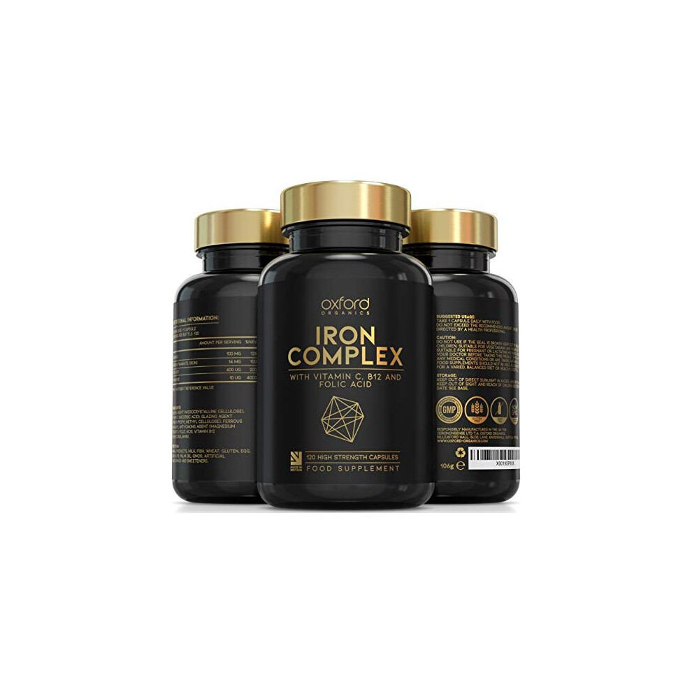 Vegan Iron Tablets High Strength 14mg â 120 Daily Gentle Iron Tablets with Ferrous Fumarate, Folic Acid, B12 & Vitamin C â Made in UK