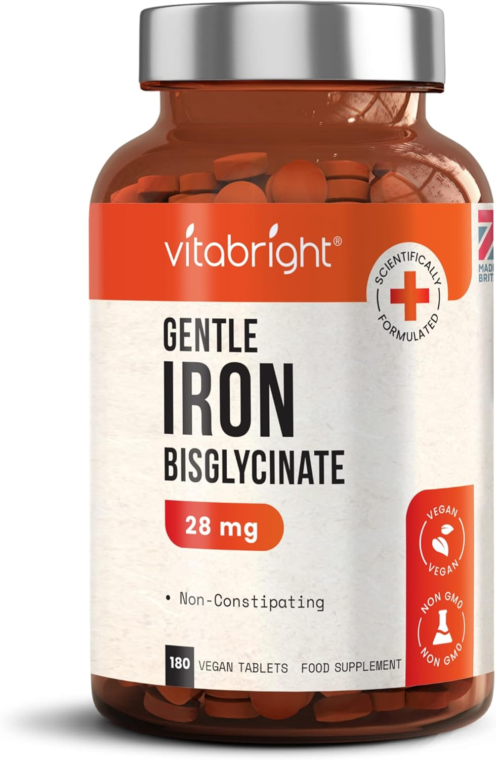 Gentle Iron Tablets High Strength 28mg Vegan Iron Tablets Women & Men, Chelated