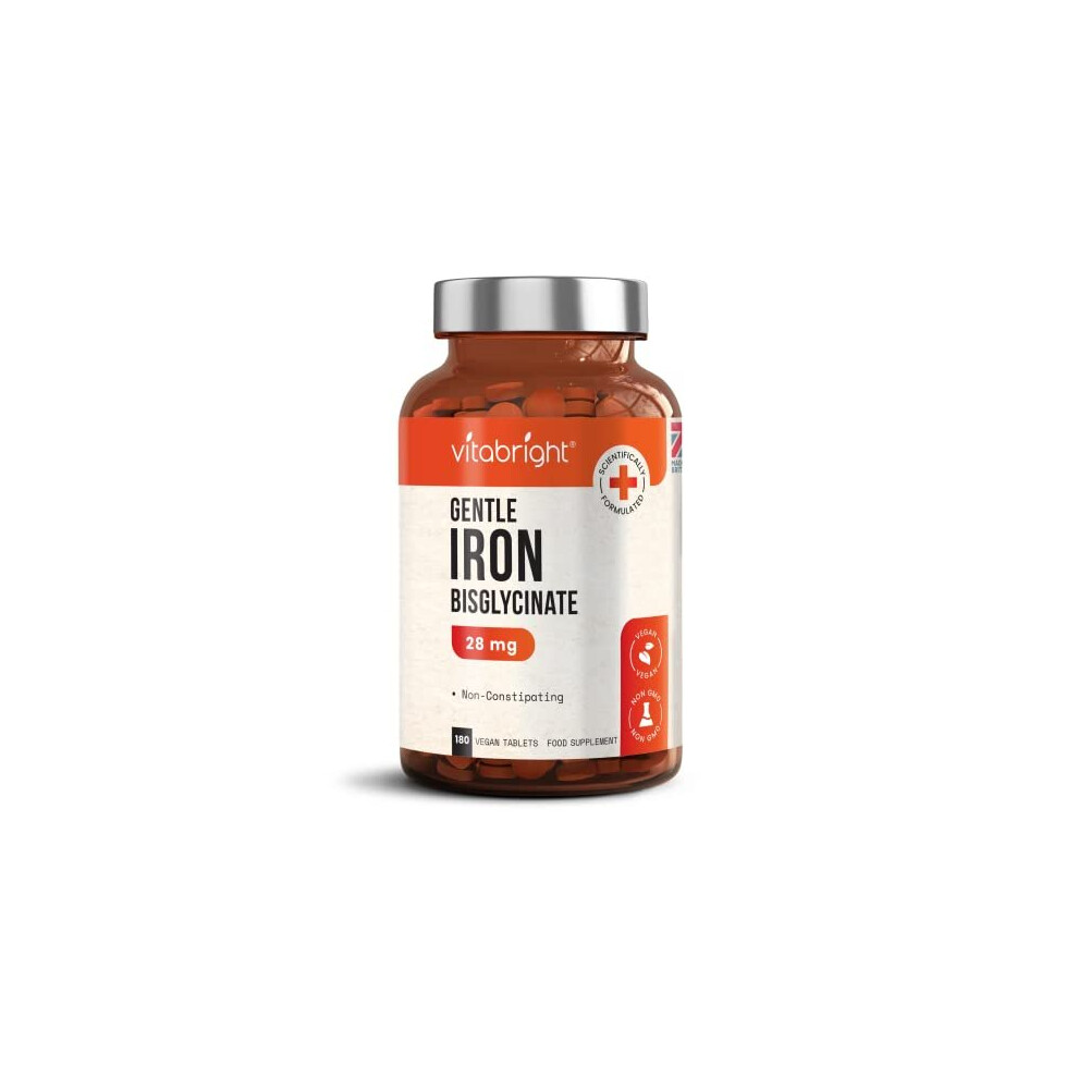 Gentle Iron Tablets 28mg 180 Vegan Tablets 3 Month Supply of Iron Supplements Gentle Iron Bisglycinate Chelate for Men Women 200 NRV Iron Pills for